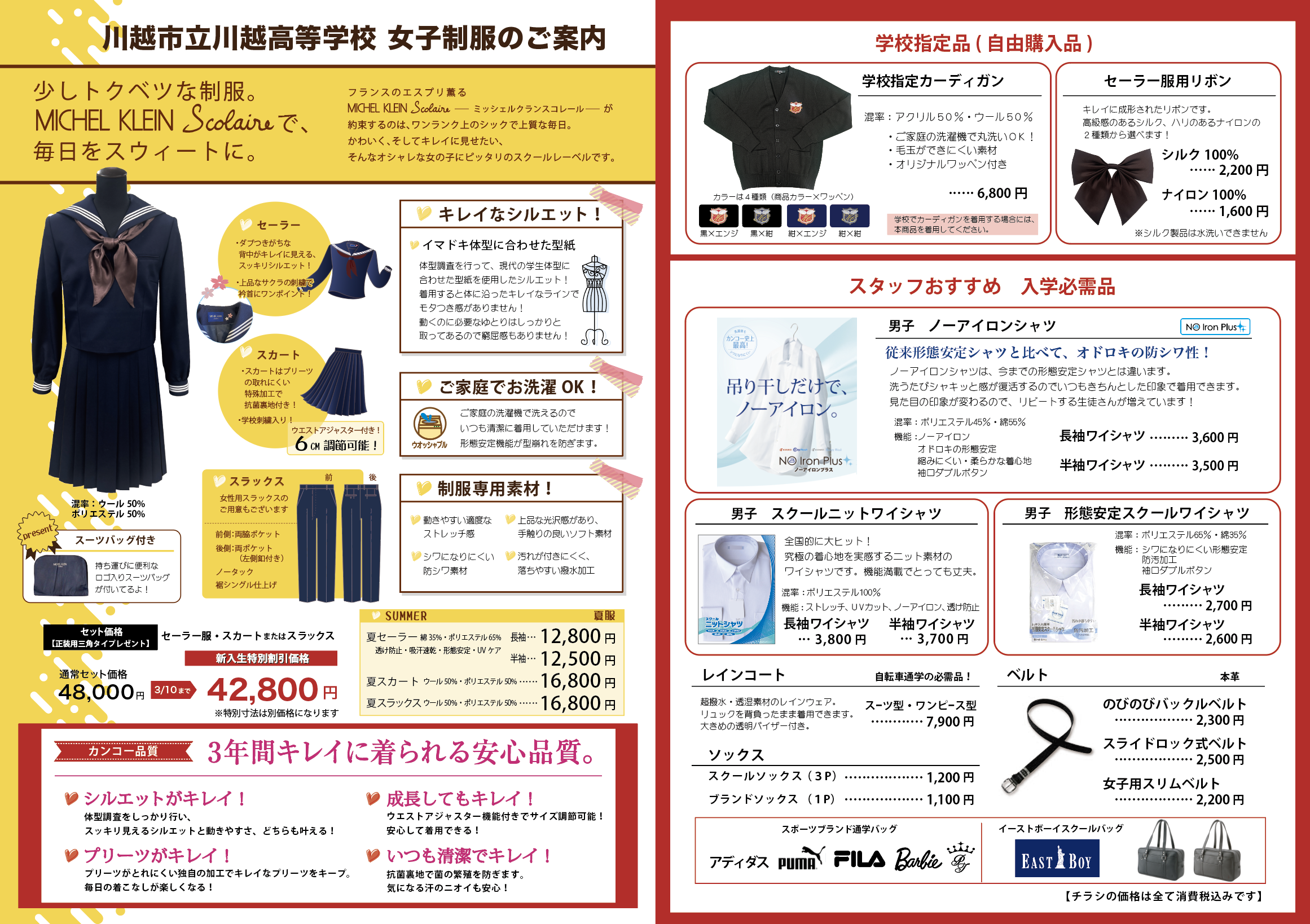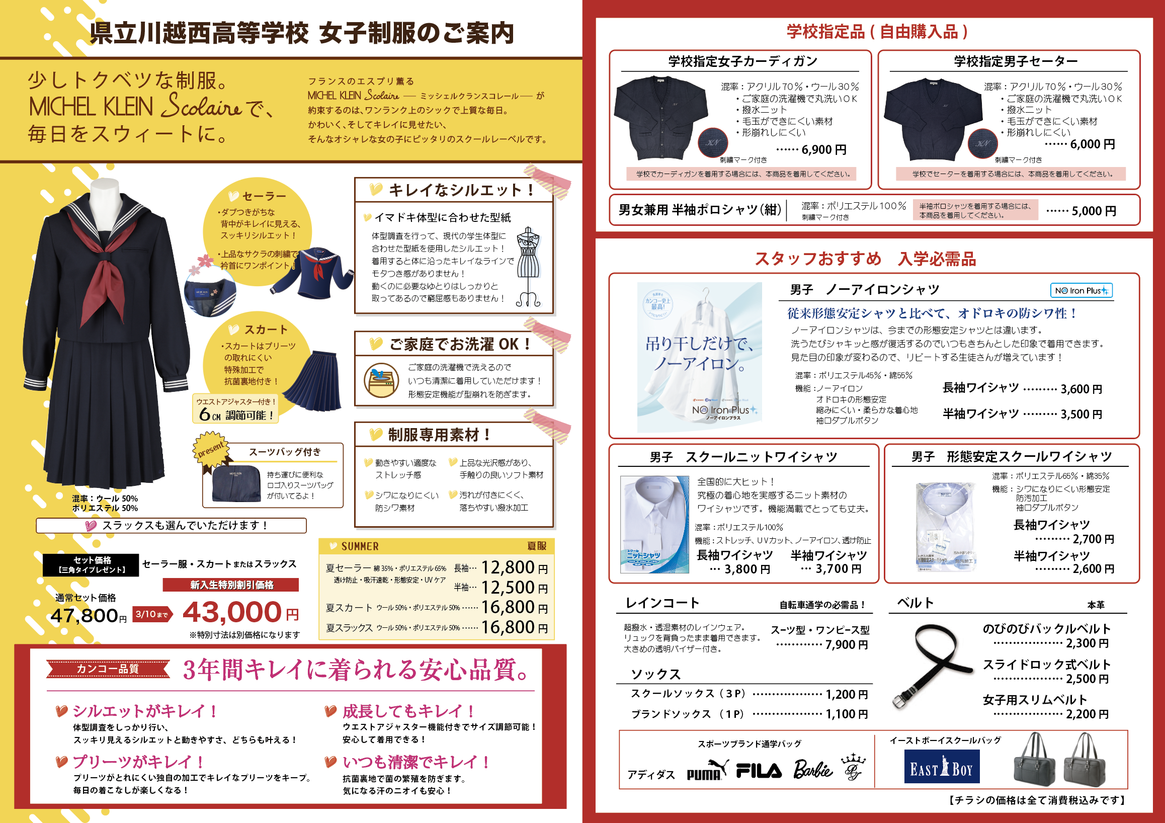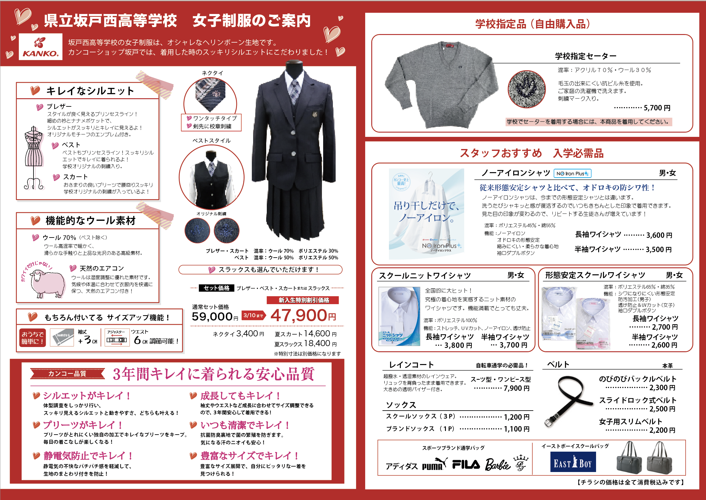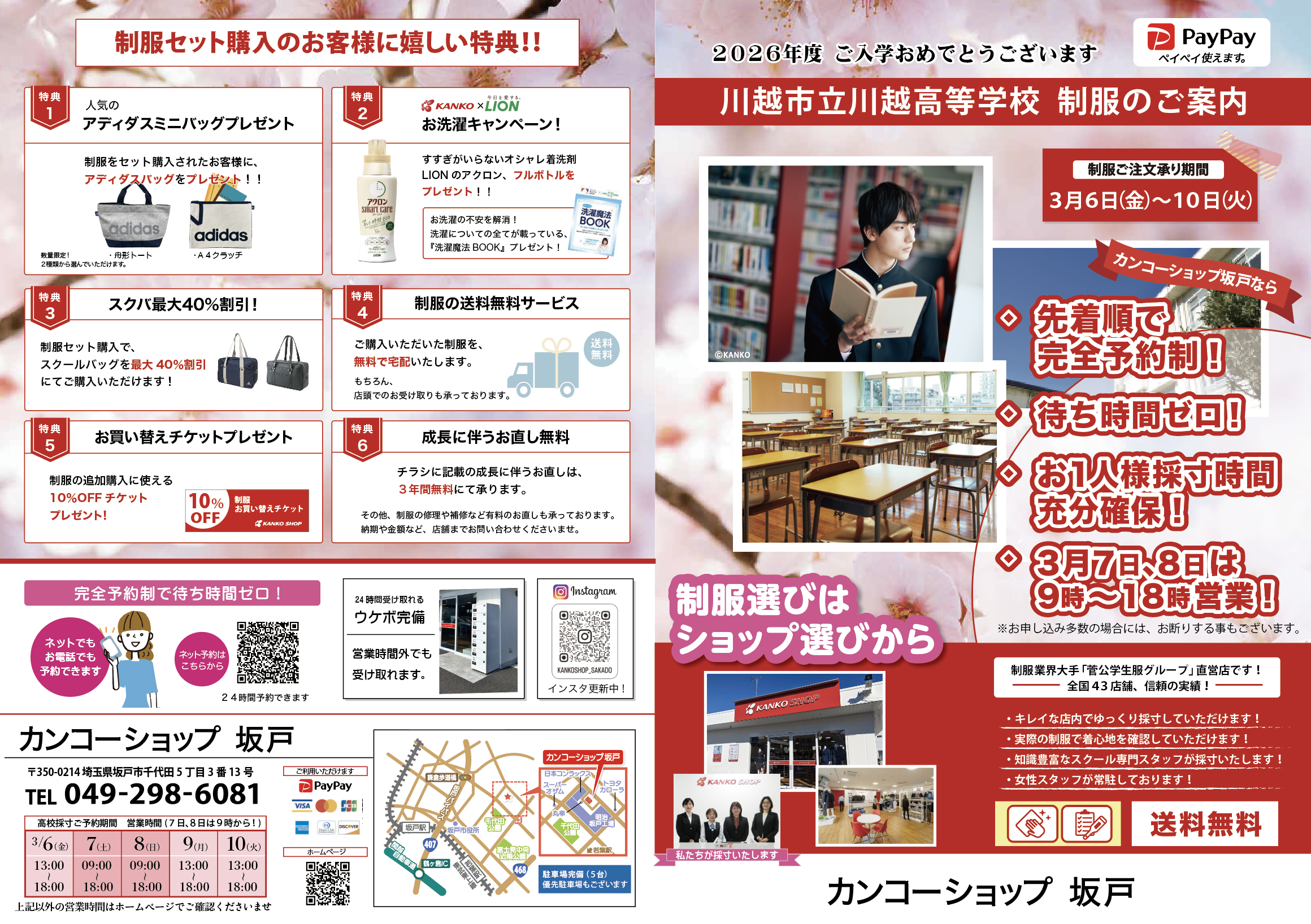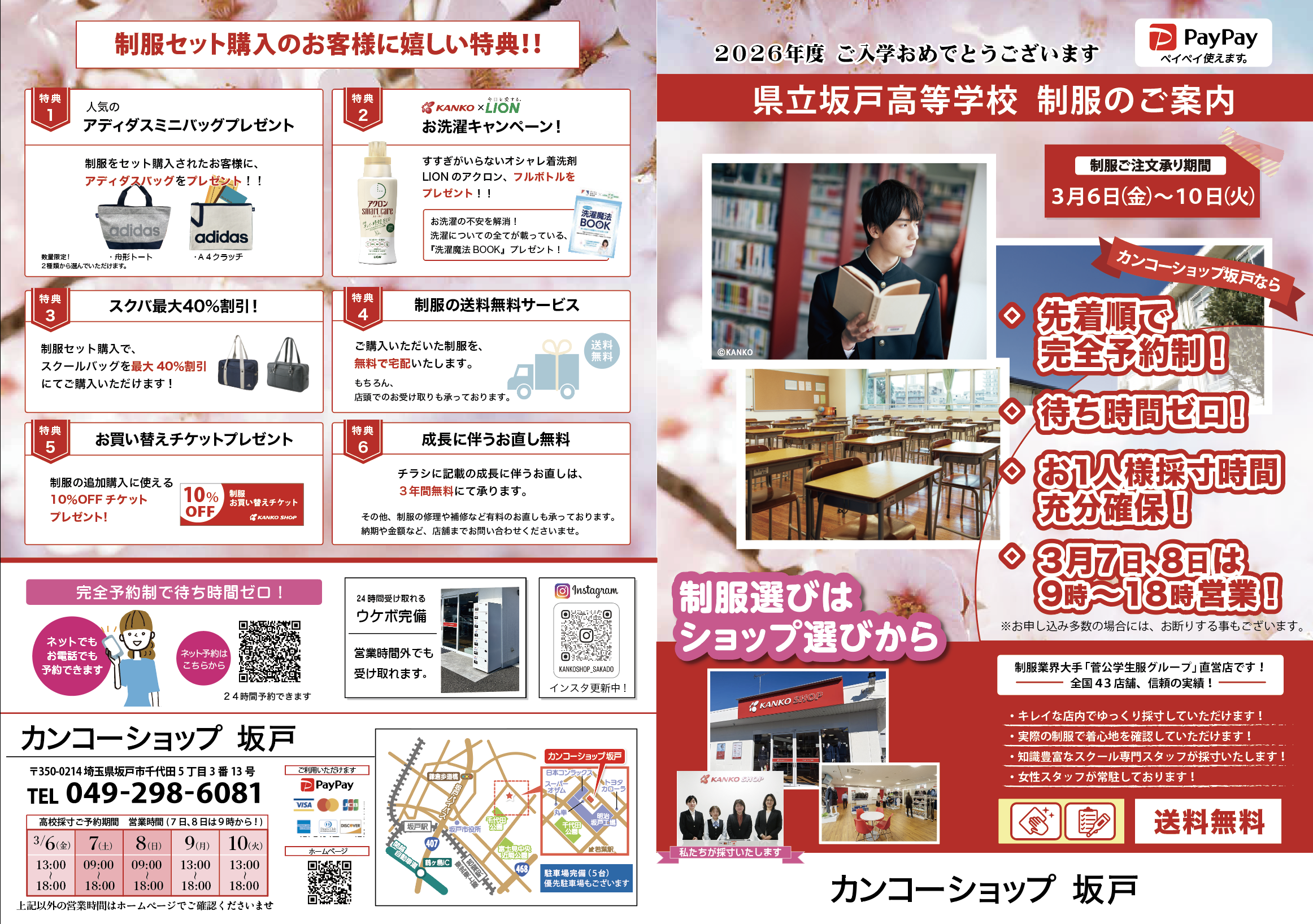 カンコーショップ坂戸では、高校の制服採寸を承ります。