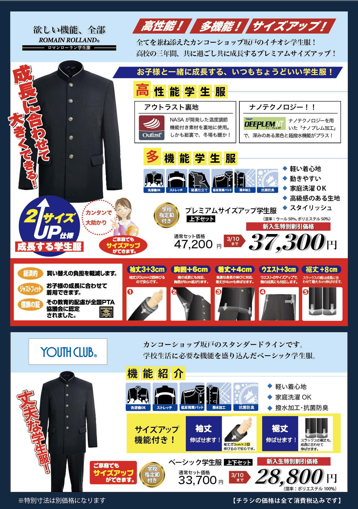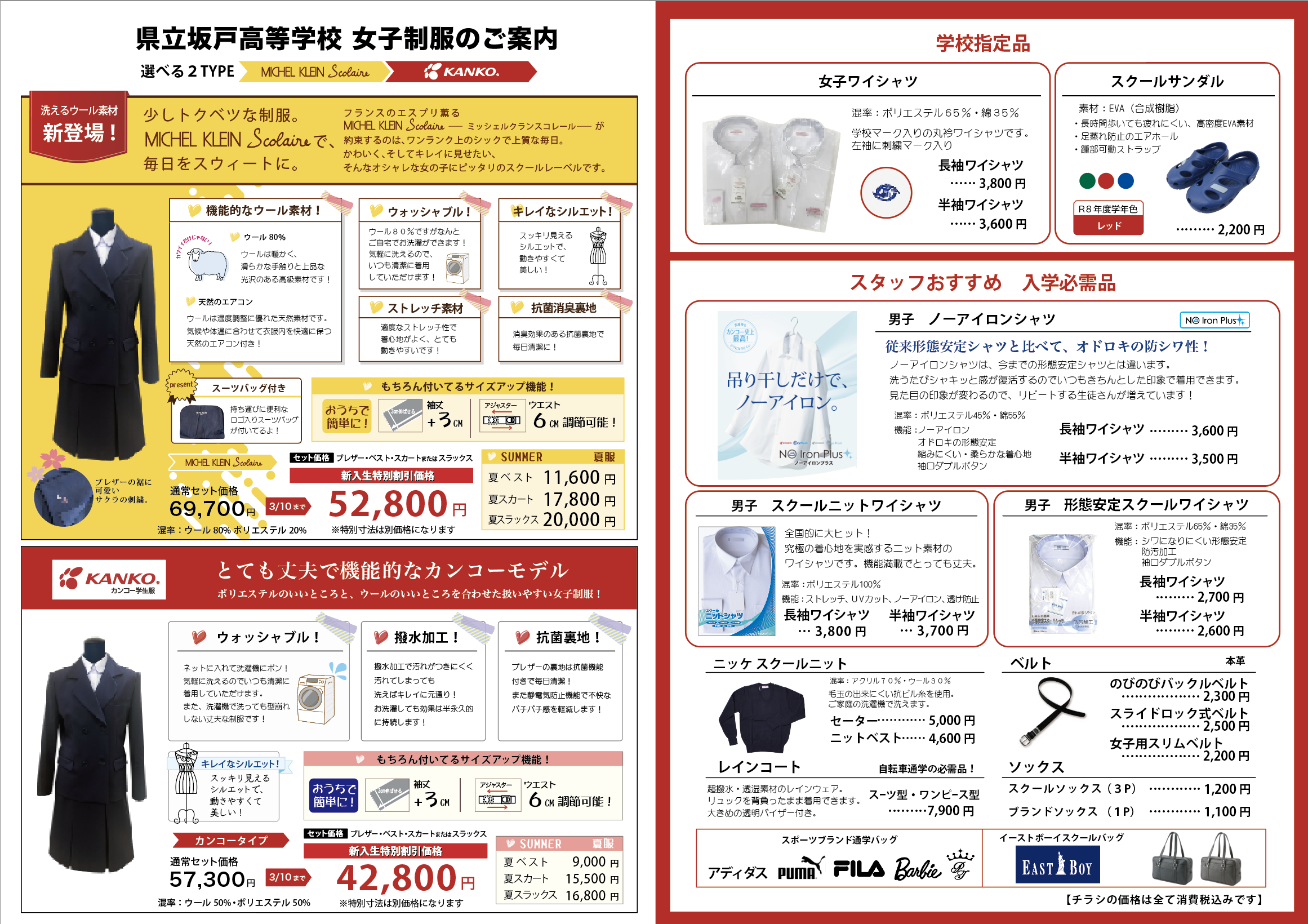男子制服(詰襟)・女子制服・指定品・小物 etc…